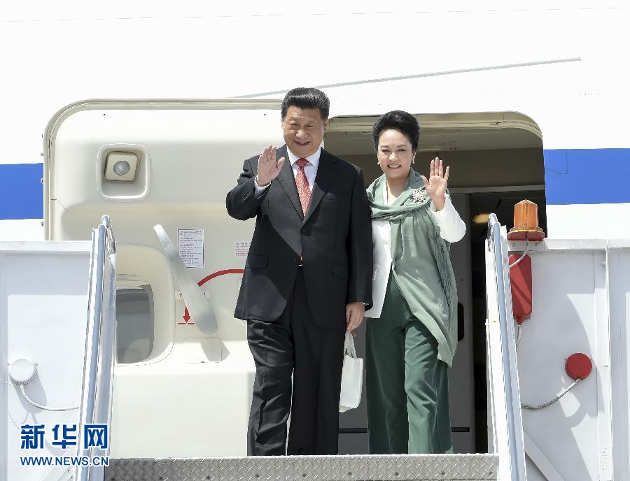 4月20日,国家主席习近平抵达伊斯兰堡,开始对巴基斯坦进行国事访问。这是习近平主席和夫人彭丽媛向欢迎人群挥手致意。 新华社记者 李学仁摄