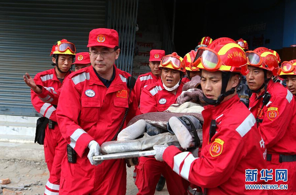 “救出来了,救出来了!”从加德满都的废墟之中,中国国际救援队队员小心翼翼抬出一名16岁的尼泊尔男孩帕纳。