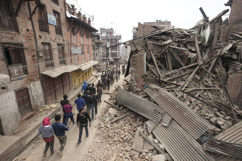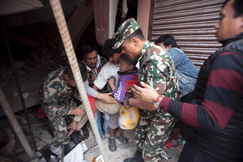 国际在线专稿:北京时间4月25日14时11分,尼泊尔发生里氏8.1级强震,此后余震不断,并引发珠穆朗玛峰雪崩。地震已造成数千人死亡。美国《纽约每日新闻》26日发布了一组尼泊尔地震后的图片,灾难给人类带来的悲痛与绝望,以及人与死神的不懈抗争,都在这组图片中一一展现。(李悦)