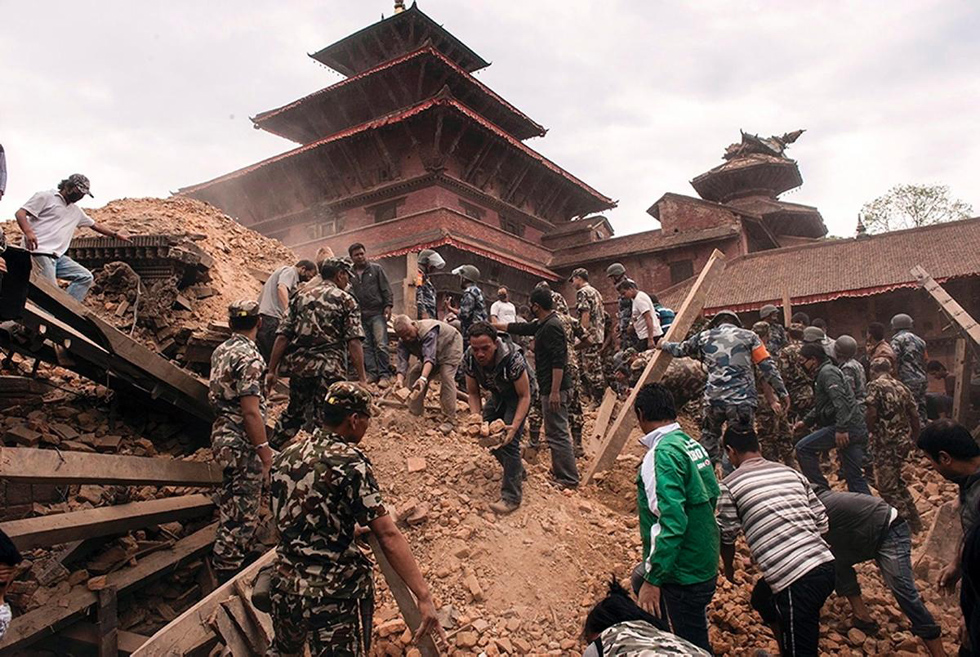 人们自从4月25日地震后就一直没有停止救援生还者。(网页截图)