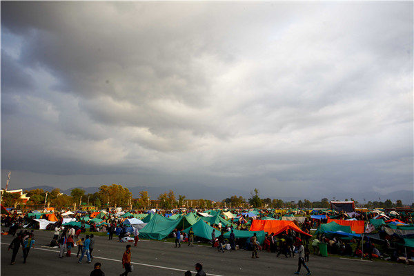 (图为2015年4月26日,在尼泊尔加德满都的敦迪凯尔广场,人们居住在临时搭建的帐篷中。新华社发,普拉塔普·塔帕摄)