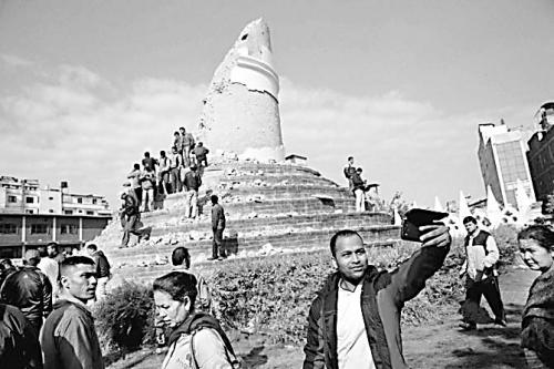 尼泊尔25日突发的8.1级大地震不仅造成严重的人员伤亡,更令该国蒙受惨重的文化损失,位于首都加德满都的不少历史建筑沦为断壁残垣。正当灾后救援工作紧张进行时,一些“震后旅行者”却前往被毁古迹前自拍(如图),引发网络舆论和国际媒体的一致谴责。