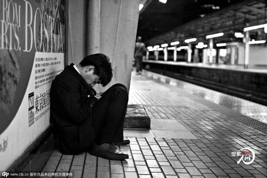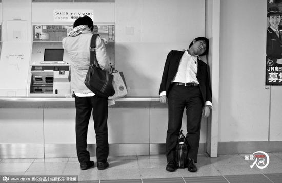 一名男子正在购买地铁票,旁边等待的白领工人站着睡着。工薪族与客户或者同事喝完酒,醉醺醺的回到家中,而在黎明太阳升起的时候,重新返回到办公室之中,就这样日复一日循环。