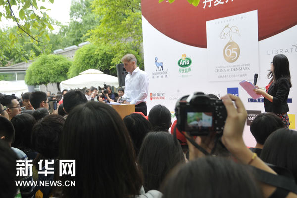 丹麦使馆“开放日”活动,丹麦驻华大使裴德盛讲话。新华网 张艺 摄