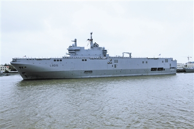 5月9日至15日,由法国海军“迪克斯莫德”号投送指挥舰和“阿克尼特”号护卫舰组成的舰艇编队,对上海进行了为期7天的友好访问。“迪克斯莫德”号是法国海军西北风级两栖攻击舰的第3艘,于2012年正式服役,舰长199米,宽32米,满载排水量22500吨,是法国海军目前现役最先进的两栖登陆舰。