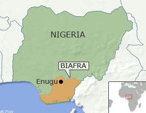 网络资料图:比夫拉共和国位置图,黑色圆点为首都埃努古