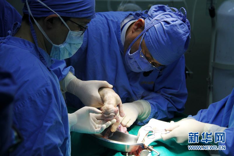 21日,黄禹锡与团队成员进行韩国警察厅克隆特殊警犬的剖腹产手术,一只克隆狗出生。新华社记者彭茜摄