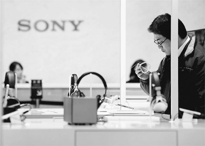 索尼最新发布的2014财年财报显示,集团销售额为82159亿日元(约684.66亿美元),相比上一财年增长5.8%,但是移动通讯业务却亏损严重。图为一位顾客在日本东京街头的索尼电器店体验可穿戴设备。