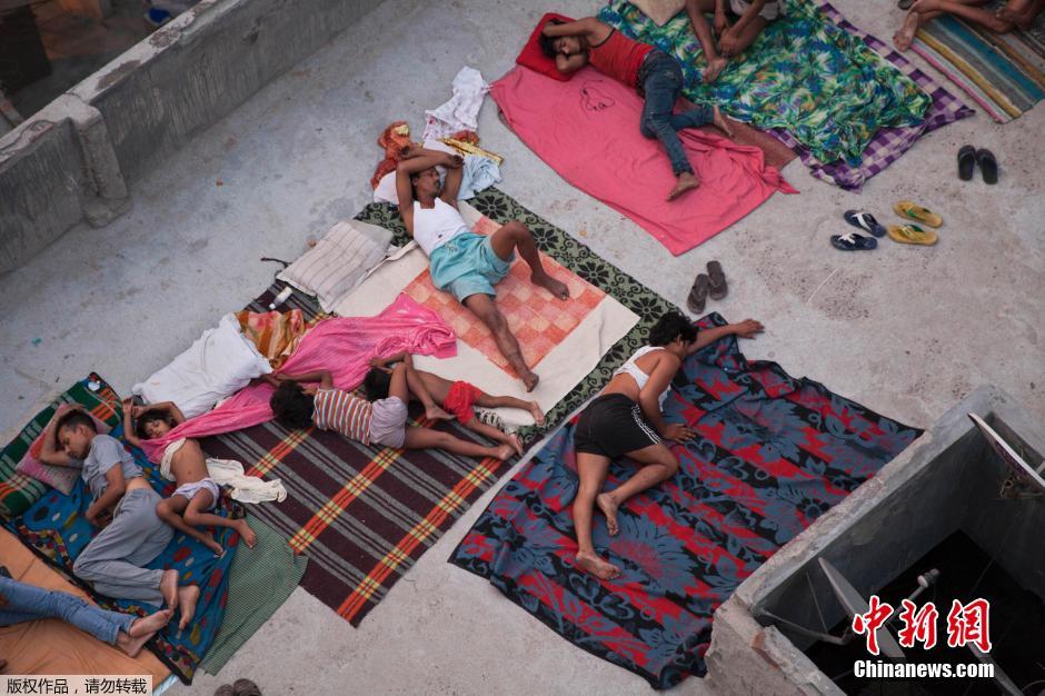印度持续高温 居民睡在天台抵御热浪(组图)