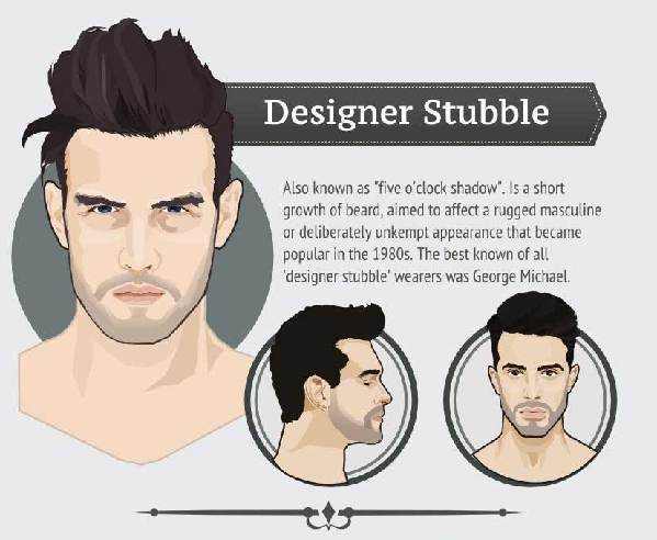 又称“五点钟的阴影”。只留很短的胡茬,以彰显粗犷的男子气慨和颓废气质。这种胡型流行于1980年代,代表人物是流行歌手乔治·迈克尔。