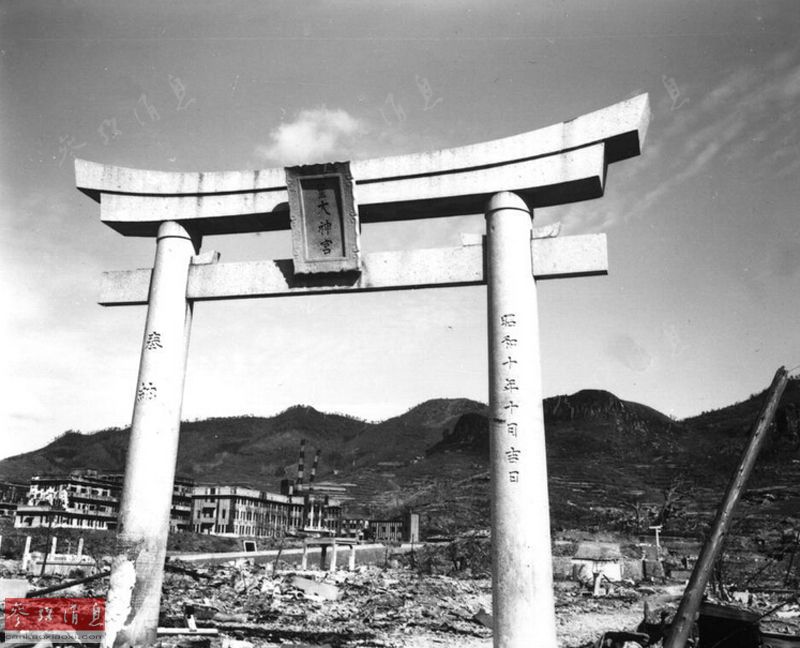 资料图片:1945年9月13日拍摄的长崎市浦上天主教堂的断壁残垣。