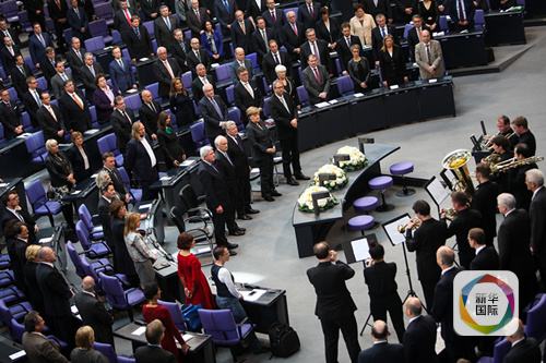 2015年5月8日,在德国柏林国会大厦,德国联邦议院和参议院共同举行活动纪念二战结束70周年,德国总统高克、总理默克尔、两院议长以及各党派政治家出席。