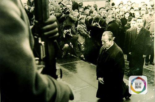 1970年12月7日,联邦德国总理勃兰特在波兰首都华沙犹太人殉难纪念碑前下跪。