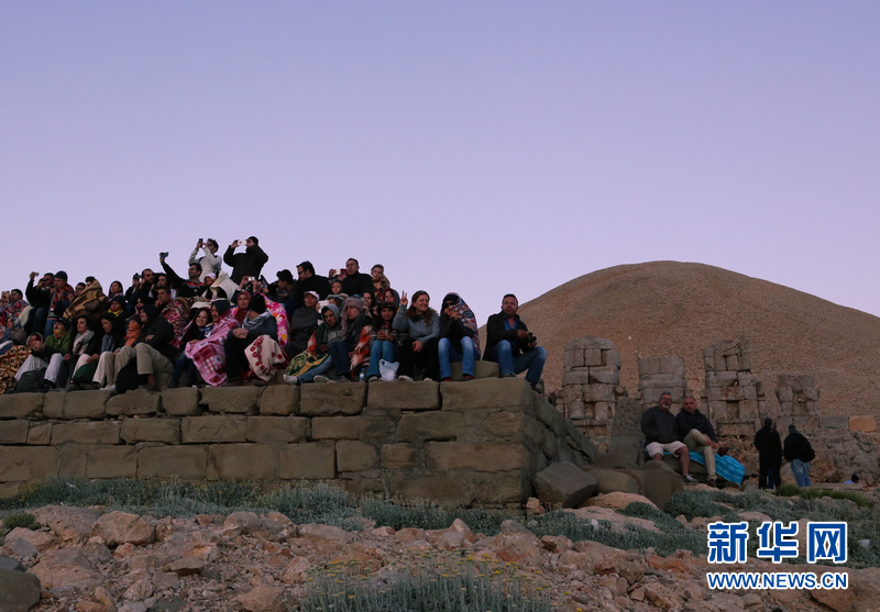 6月21日,数十名土耳其和外国游客在山顶等待日出,其日落景色也同样壮观。新华社记者邹乐摄