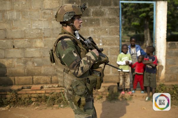 法国维和士兵在班吉巡逻。