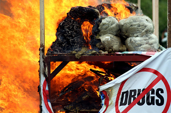 2014年6月26日,缅甸在全国三个城市同时展开毒品销毁活动,共销毁数百公斤、价值1亿3千多万美元的各类毒品。