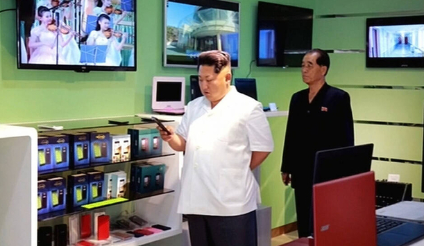 资料图片:图为金正恩正在机场销售电子产品的商店视察。