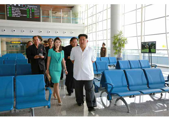 新华社照片,平壤,2015年6月25日 (国际)(4)金正恩视察完工的平壤国际机场航站楼据朝中社6月25日提供的照片显示,朝鲜最高领导人金正恩日前携夫人李雪主视察完工的平壤国际机场2号航站楼。2015-06-26 08:12:22