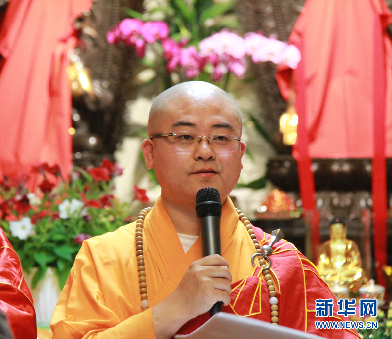 加拿大首都渥太华弥陀寺5日举行全堂佛像开光法会。来自中国、美国和加拿大的40多位高僧大德、中国驻加大使馆官员和100多名居士出席了开光仪式。 记者 李保东 摄