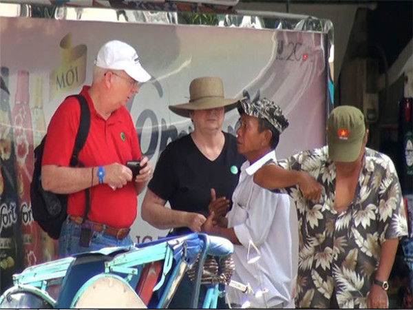 越南第一大城市胡志明市,有“东方小巴黎”之称,但这里的“黑三轮”却绝对不会让游客感受到一丝浪漫。新华国际客户端了解到,上个月,有外国游客举报,在胡志明市中心的边城市场附近,有不少专“宰”外国人的“黑三轮”活动。这些没有经营执照的三轮车夫每天早晨开始在市场周边寻找零散的外国游客,一旦揽到活儿,就带客人在附近兜圈子,到目的地后以各种理由多收车费,甚至不找钱就扬长而去。由于“黑三轮”车夫把车牌号用布遮挡,使被骗乘客无法投诉。