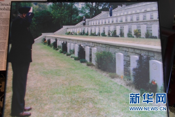 麦克唐奈向记者展示的照片显示,2005年他重返香港昔日战场时在西湾国殇纪念坟场向逝去的战友敬礼。新华社记者 晏忠华摄