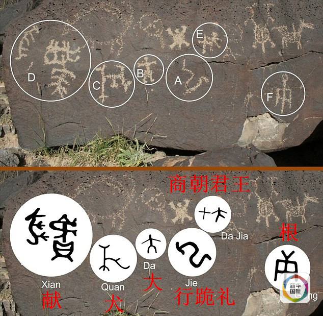他称,自己已经识别出了84个象形符号,这些符号与分布在新墨西哥、加利福尼亚、俄克拉何马、犹他、亚利桑那和内华达等地的“中国人活动遗址”相匹配。专家研究认为,这些符号可能是几千年前中国人使用的文字。