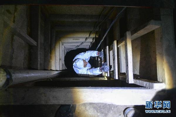 7月14日,在墨西哥阿尔莫洛亚-德华雷斯,调查人员查看墨西哥锡那罗亚贩毒集团头目华金·古斯曼用来越狱的暗道。墨西哥政府13日宣布,悬赏6000万比索(约合380万美元)捉拿日前越狱的“全球头号毒枭”、墨西哥锡那罗亚贩毒集团头目华金·古斯曼。古斯曼11日晚通过一条与监狱淋浴区连通的暗道从墨西哥的“高原”联邦监狱逃脱。新华社发(马里奥·巴斯克斯摄)