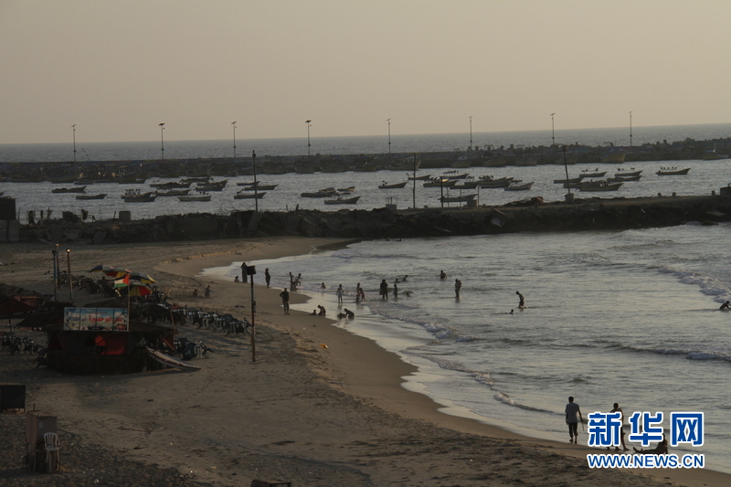 暮色中的加沙海港。由于以色列实施封锁政策,加沙港不能与外界通航,只是个海港,而且作业范围不能超过6海里。巴勒斯坦希望借助中国提振经济社会发展,从武术学校到基础设施建设。新华社记者 刘立伟 摄