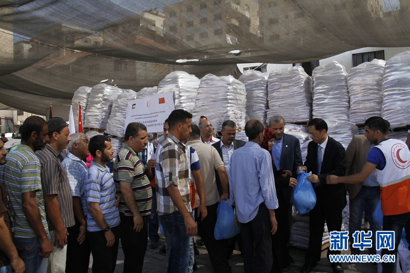 陈兴忠在捐助现场向生活困难的巴勒斯坦民众发放大米。中国驻巴办事处工作人员、红新月会官员和当地民众300多人参加了发放大米仪式。巴勒斯坦红新月会负责人尤尼斯·哈提卜对中方援助表示感谢。他说,中国始终支持巴勒斯坦人民的合法权益,巴勒斯坦希望早日结束被占领状态,实现自由与独立。新华社记者 刘立伟 摄