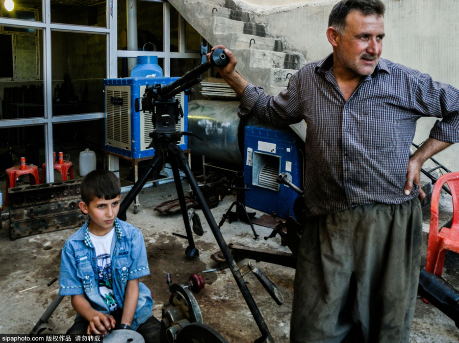 当地时间2015年7月20日,伊拉克埃尔比勒,摄影师镜头探访志愿为库尔德武装卖力的枪炮大师--易卜拉欣·哈桑(Ibrahim Hassan)。