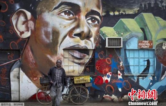 资料图:在肯尼亚首都内罗毕街头,奥巴马的形象被画成壁画。