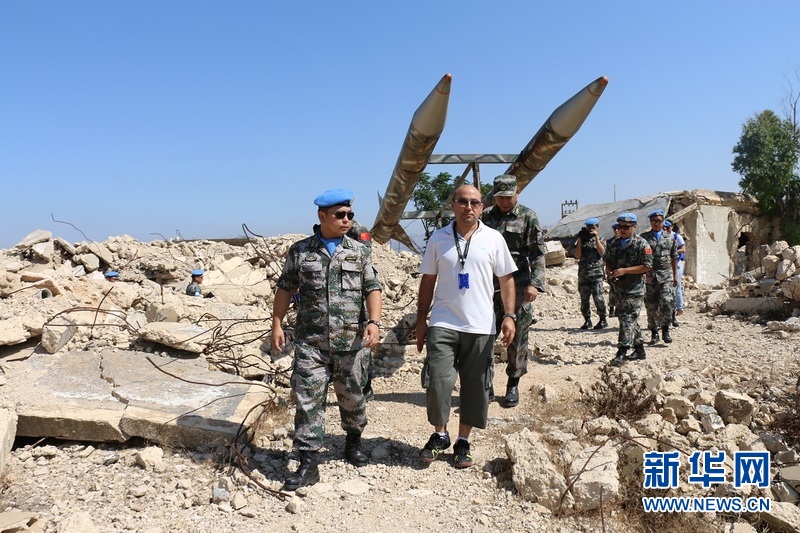 中国赴黎巴嫩维和部队官兵参观被炸毁的联合国观察员哨所遗址。新华社记者 叶洋萍摄