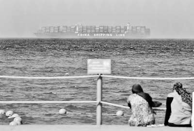 上图:8月4日,一艘中国货轮经过苏伊士运河新航道,驶入地中海。新华社发