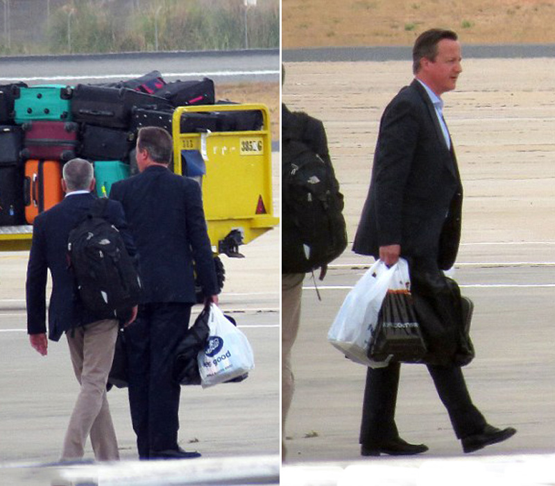 媒体对卡梅伦度假生活的兴趣却总集中在吐槽他那不够时尚的穿着上。也许是因为跟身为设计师、曾做过时尚顾问的妻子萨曼莎相比,卡梅伦有些不修边幅。今年6月,萨曼莎在西班牙度假时,被媒体拍到身着比基尼的照片,被民众称赞身材健美匀称。但卡梅伦却一直被指为发福、衣着土气。图为卡梅伦一家出行度假的行李。