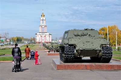 库尔斯克英雄纪念碑前的坦克群像。图/东方IC