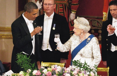 女王并未制止奥巴马,只回以不动声色的微笑。发现不妥的奥巴马只好静静放下酒杯,直到国歌结束。