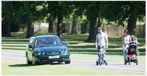 作为一国元首,英国女王是全国唯一能无照上路的驾驶员,也只有女王有特权能开车进入温莎公园。不久前英国媒体拍到,女王在温莎公园中自驾汽车,正好遇到一对年轻夫妇推着婴儿车。