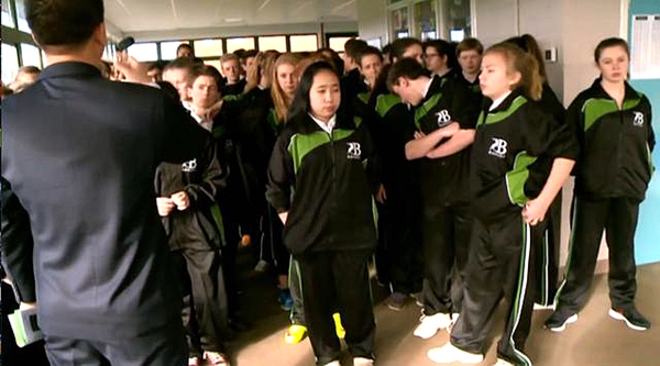 片中抓取的中国教育元素,数数可真不少:早出晚归、做操、升旗、大班教学、板书、听讲、笔记、背公式、作业、预习复习、课堂纪律、校服、罚站、眼保健操、长跑测试、选班干部、值日打扫教室,细致到上课前先全体起立喊老师好,第二集里还召开了家长会……