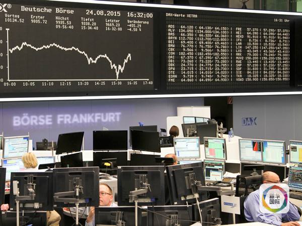 这是8月24日在德国法兰克福证券交易所大厅拍摄的DAX股指显示屏。