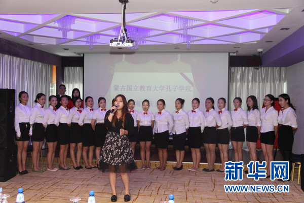 9月1日,在乌兰巴托,蒙古国立教育大学孔子学院学生在揭牌仪式上进行表演。新华社记者 郑闯摄