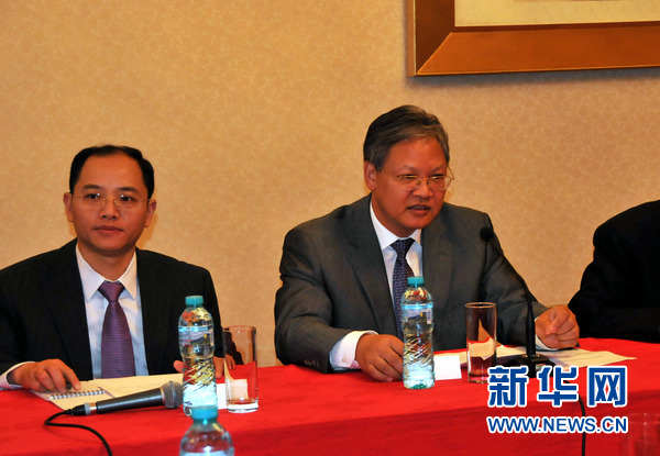 徐飞洪大使在座谈会上发表主旨讲话。新华社记者陈进摄