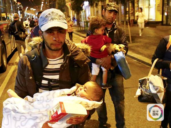 9月5日,不少难民抱着孩子等待乘车从匈牙利前往奥地利和德国。新华/路透