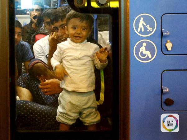 9月5日,一名难民儿童登上一辆从匈牙利开往奥地利和德国的汽车。新华/路透