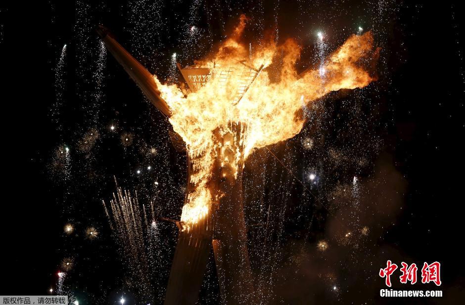 美“火人节” 最后一天 巨大人像烈焰熊熊(组图)
