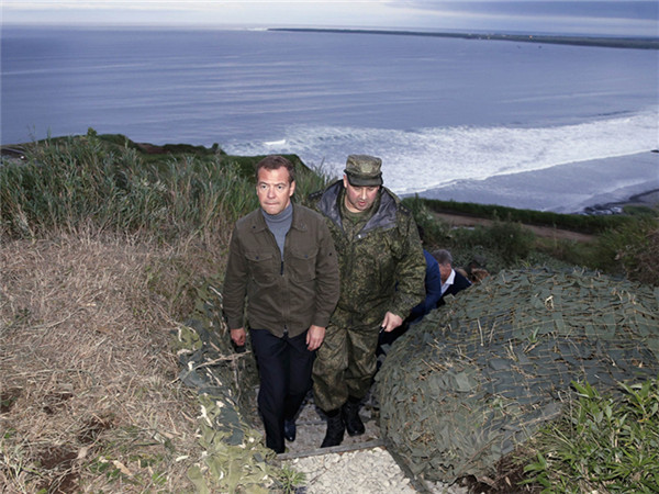 这是梅德韦杰夫以国家领导人身份第三次登上南千岛群岛。