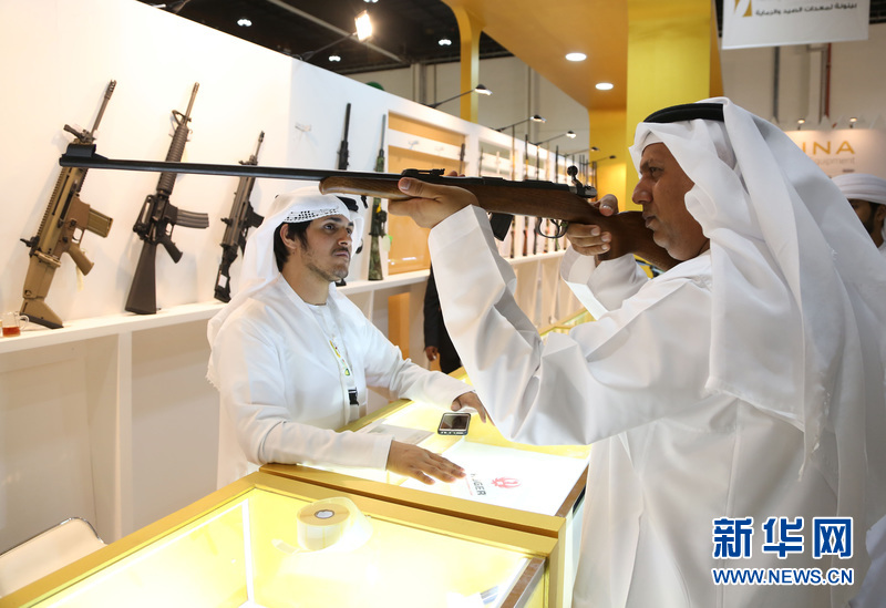 一位阿联酋男子在体会一枝自动步枪。新华社记者安江 摄