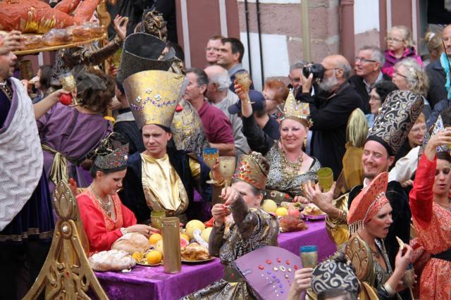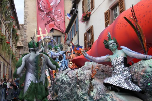 然而,这些小镇更吸引游客的还是入夏以后举办的各色葡萄酒文化节。每年从7月份开始,葡萄酒之路上的各个小镇就开始举办自己的欢庆活动,有集市、游行、花车、服饰表演,主题各不相同,甚至每个小镇每年都有自己新的主题,但中心是一个,把葡萄酒文化打造成阿尔萨斯的品牌和标签,也是因此,在举办节日期间,各个酒庄开门迎客,而在夜晚,更是有人“不醉不归”。