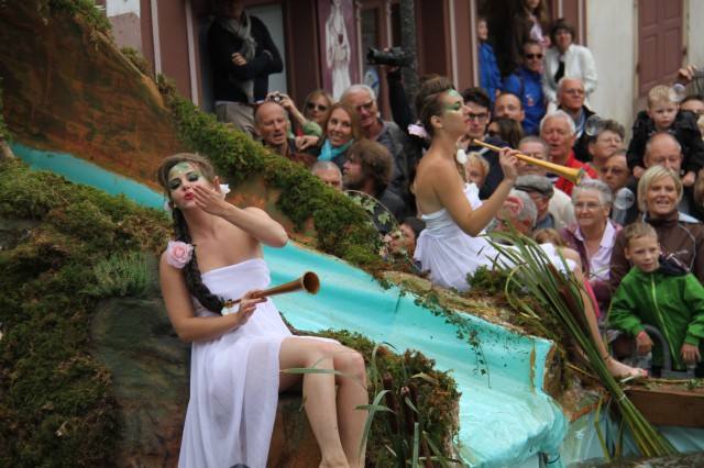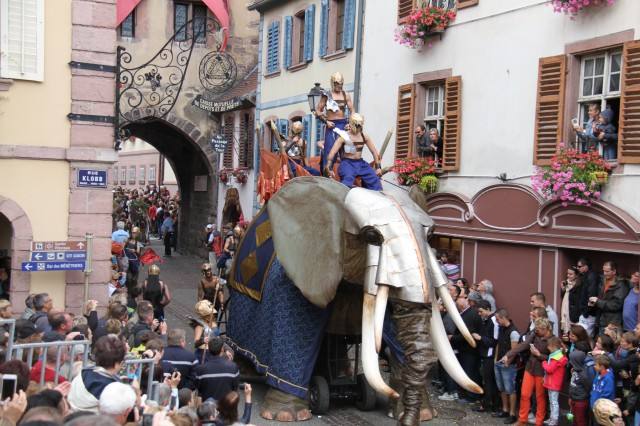 关于举办葡萄酒文化节,葡萄酒之路上的小镇既有传统,也是行家。其中举办历史悠久规模宏大的不胜枚举。如人口只有5000居民的Ribeauvillé, 举办这种庆典的历史可以追溯到1390年,今年该镇花车游行的主题是“亚历山大”,将近20个花车展示亚历山大征战过程中的一个个历史故事。该市负责庆典活动的副市长WIECZERZAK介绍说,全镇1200多人参加了花车表演,大约占全镇居民的四分之一,此外,他们从邻国德国、瑞士和比利时也请来了400多人的乐团,而前来观看花车游行的外来游客更是超过20000人。巴黎红磨坊新闻部负责人在花车表演结束后不禁评价说:“无论从花车制作到服饰、表演,都绝对专业”。