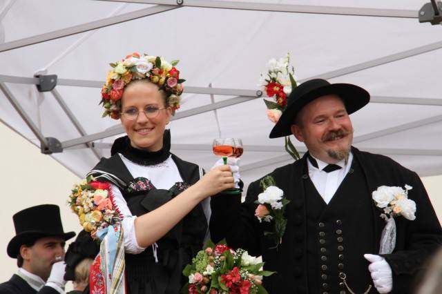更有意思的是葡萄酒之路最北端的小镇Marlenheim,今年居然举办了19世纪婚礼场景再现,从新娘家运来嫁妆,到新郎新娘办理手续,到宣读和签署婚约,一幕幕夸张场景令人捧腹,其间,邮差还赶来送来一份拿破仑三世给新郎新娘的贺电,更让人忍俊不禁……