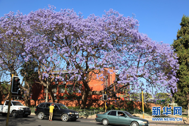 赞比亚首都卢萨卡一向有着“花园城市”的美誉,地处热带高原地区的城市,一年中多数时间绿树成荫。9月是赞比亚干冷季向干热季过度的时间,也是蓝花楹的花期,一簇簇怒放的蓝紫色扮靓了卢萨卡的大街小巷,给这座美丽的城市带来了春的气息。